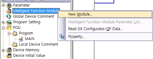 - New Project를 하시고, PLC Parameter를 설정합니다.