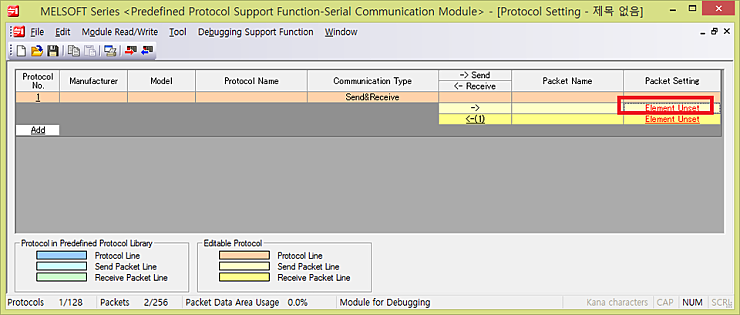 - 송신프로토콜을 입력하기 위해 Element Unset을 눌러줍니다.