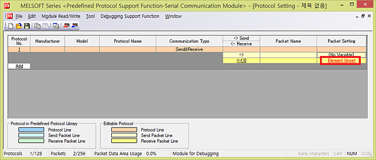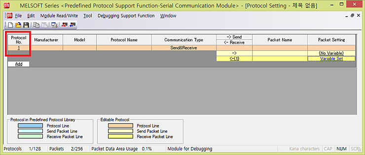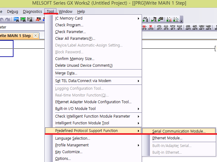 - 메뉴에서 Tool - Predefined Protocol Support Funcion - Serial Communication Module을 선택합니다.