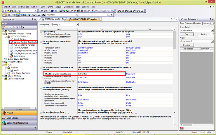 - Various_Control_Spec에서 Word/byte units spec을 1:Byte Unit으로 변경해줘요.