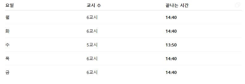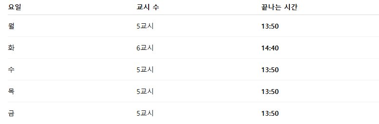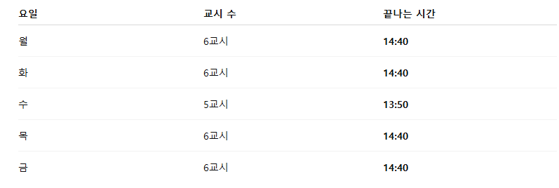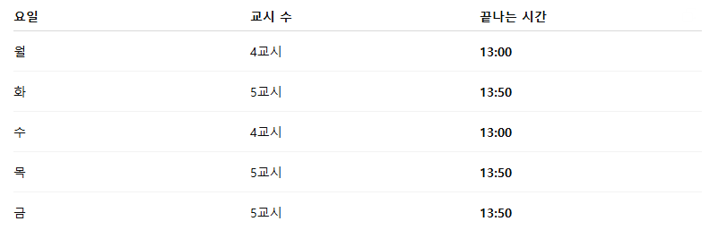 - 학교 행사·재량휴업·단축수업이 있으면 달라질 수 있음