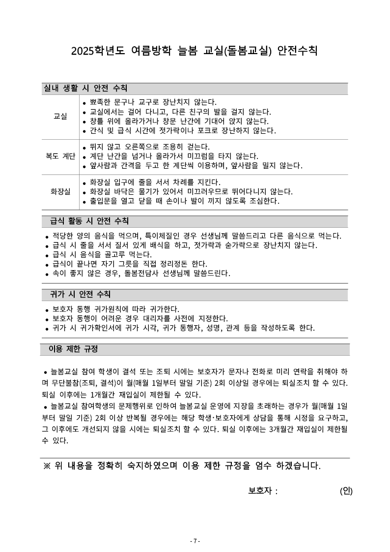 - 정확한 귀가 시간은 담임 안내가 최종 기준임
