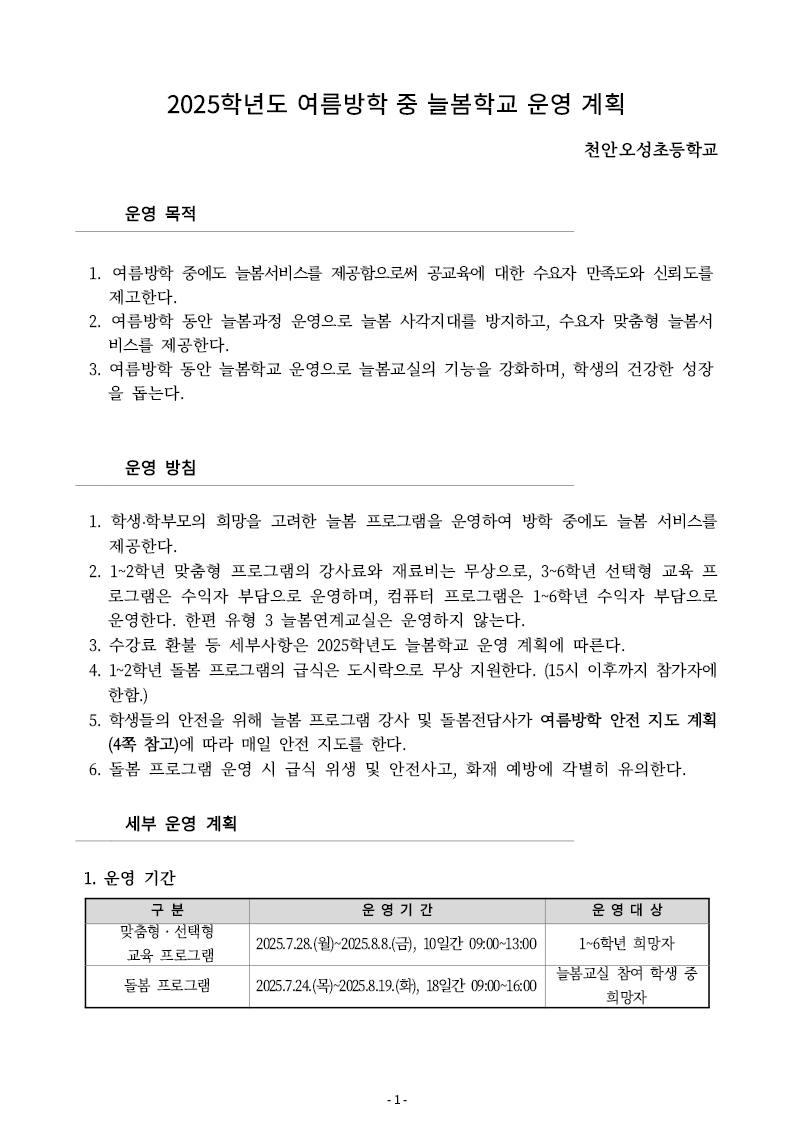 📘 천안오성초 전학년 요일별 수업 종료 시간표