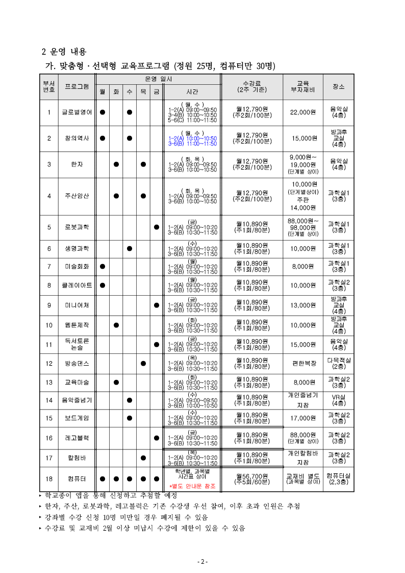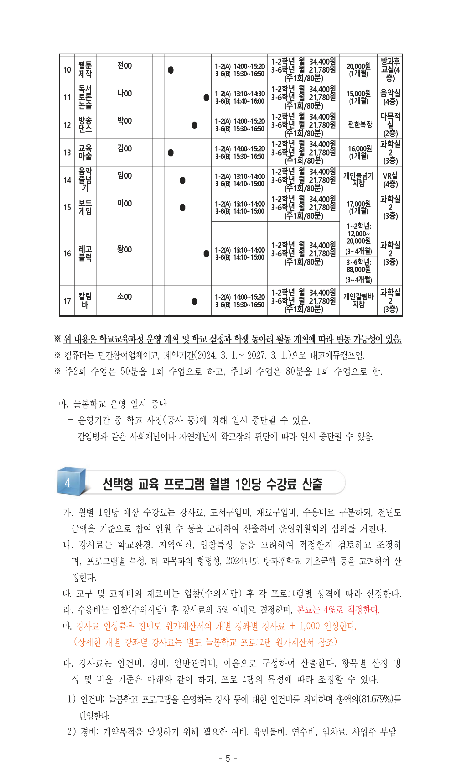 - 방과후학교 참여 학생은 16:30까지 학교에 남을 수 있음